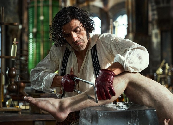 Oscar Isaac encarna a un doctor obsesionado, con el carisma habitual del actor, aportando una presencia de autoridad compleja que es a la vez impresionante y vulnerable. Jacob Elordi, como la Criatura, realiza quizá la labor más sorprendente: su transformación física y emocional, recogida también en entrevistas, transmite el peso del sufrimiento y la vulnerabilidad del ser rechazado. Mia Goth aporta una figura femenina que, sin eclipsar el núcleo central, refuerza la dimensión humana de la trama. El reparto secundario —Waltz, Dance, Mikkelsen— aporta contundencia, aunque su desarrollo queda algo al servicio del espectáculo mayor.